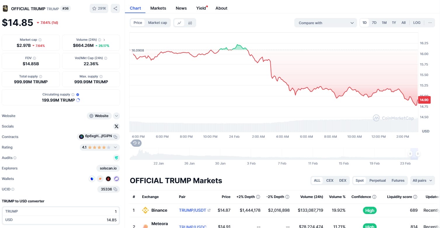 Official Trump是基于 Solana 区块链的 Meme 代币,于 2025 年美国总统就职典礼前夕推出。