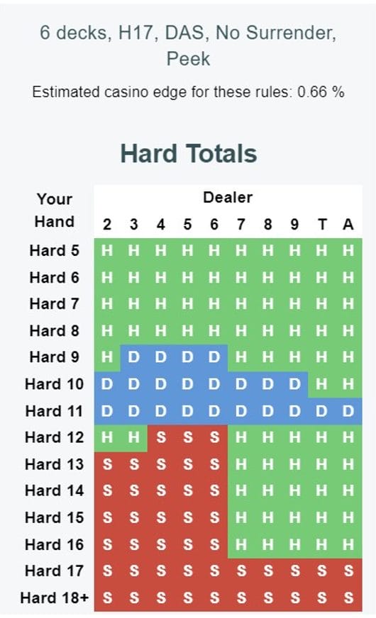 寻找一种方法将赌场优势降低到边际量?基本策略是一组经过数学计算决策,可以帮助新手和有经验的玩家在21点中赢得更多。了解遊戲 規則、點數、牌 點數和的 牌 面对于制定有效策略至关重要。上面21点基本策略工具提供了一种简单方法来记住各种不同盈利决策,例如何时拆分對 子、加倍、投降、命中或停牌,并根据手上 的 牌和手中 的牌的点数来做出最佳选择。
