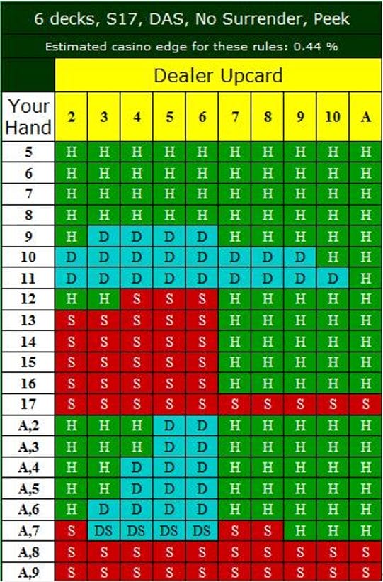 标准基本策略图只能为您提供一组规则策略,例如庄家在软 17 上命中,您需要关注莊家 牌 面和自己的手上 的 牌,将您掌握限制在一场游戏中。我们 Blackjack Basic Strategy Engine 21点基本策略算牌允许您通过单击按钮快速调整规则,为您选择游戏计算最佳策略。该引擎易于阅读图表详细说明了所有硬总计、软总计和配对策略,包括a 牌的不同点 的计算方式。
