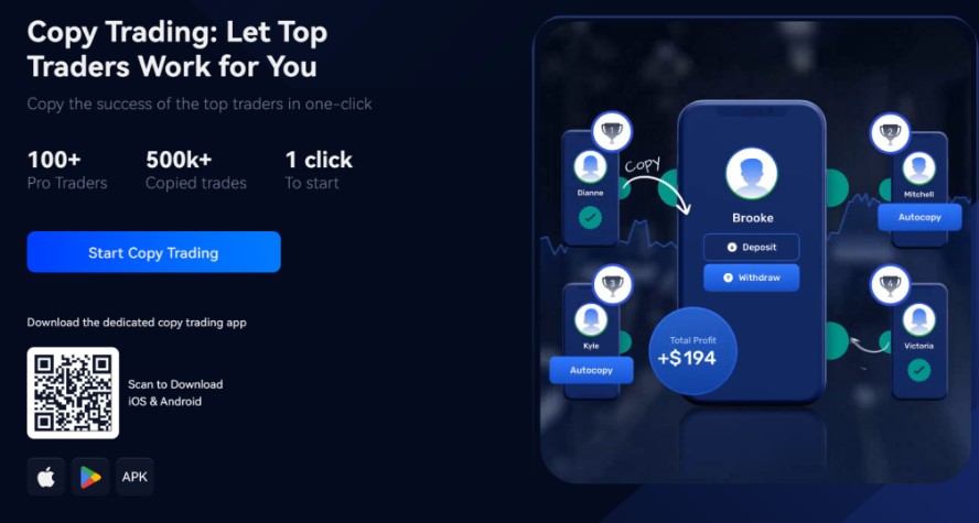 如果想获得全面的交易体验,您可以下载 Margex 应用程序,其中包含 Margex 的所有产品。如果您喜欢复制交易,则可以下载复制交易应用程序。它同样强大,可以存储您的资产,同时为您提供复制专业人士交易的工具。