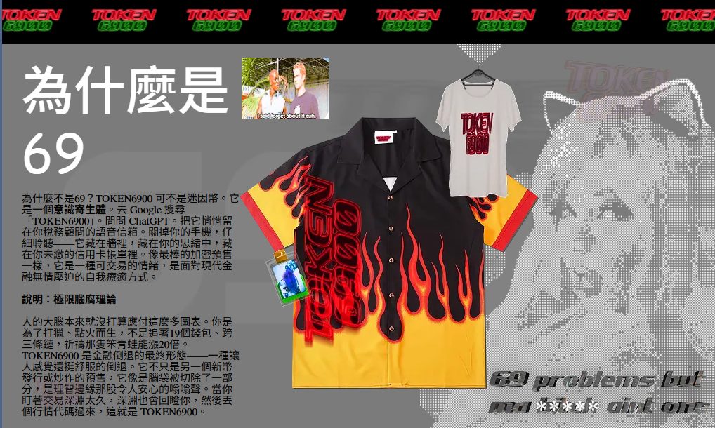 灵感源自2000年代初的怀旧情怀与「69」精神,TOKEN6900要打破「代币必须有功能」的迷思。当其他币还在假装图表、基本面与路线图重要时,TOKEN6900提供唯一的诚实产品:集体妄想打包成的流动性。