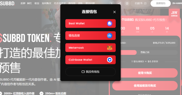 SUBBD($SUBBD)是一个新兴的预售加密貨幣项目,支持一个拥有 2.5 亿活跃粉丝的人工智能创作者平台。该平台结合了 Web3 与 AI 技术,为内容创作与粉丝互动带来全新方式。目前,投资者可在代币正式上市前,以每枚 0.0551 美元的价格参与预售,抢占早期布局机会。