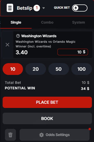 选择您要下注的赛事和投注市场。在投注单中输入您的投注金额,查看潜在的赔付并确认您的下注。对于滚球投注,请迅速操作,因为赔率会实时变化。下注一旦提交,请关注赛事以查看您的投注是否成功。获胜金额会自动记入您的账户。