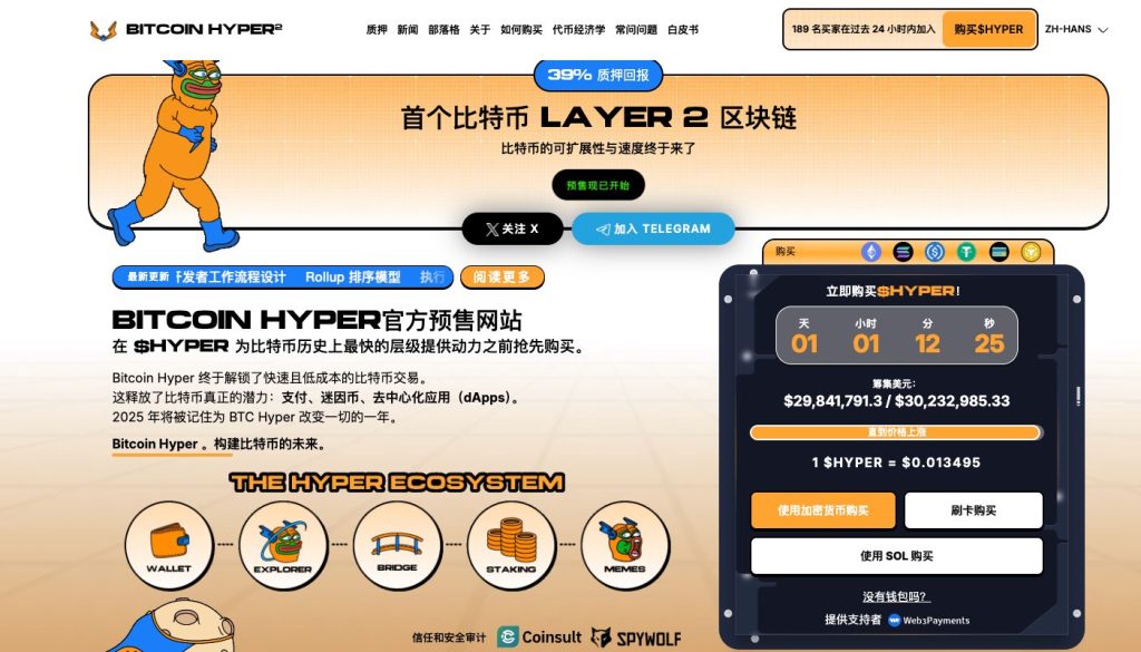 Bitcoin Hyper($HYPER)作为引爆比特币Layer 2新叙事的先行者,目前预售金额已惊人地突破2,980万美元,这反映出市场对于比特币二层网路叙事的强势回归寄予厚望。该项目核心技术在于採用了高性能的Solana虚拟机设计,成功让原本不可编程的比特币主网具备处理複杂智能合约、游戏与支付应用的能力。