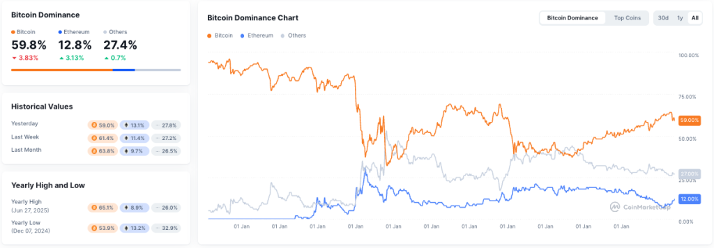 加密分析师:山寨币季正式到来!比特币市占率跌破近半年低点