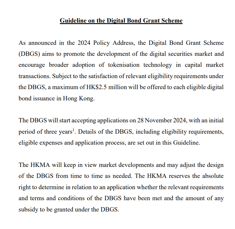 在政策层面,香港金管局于 2024 年推出“数位债券资助计划(DBGS)”,为符合资格的债券发行提供最高 250 万港元补贴,为期三年。业内人士认为,该计划提升了市场关注度,但真正的驱动力仍是代币化债券在效率、透明度和融资渠道上的实际价值。