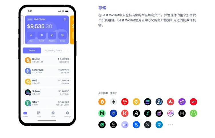其次,其功能栈远超“单纯存储钱包”。Best Wallet 通过跨 330 个 DEX 与 30 条跨链桥的流动性路由,以极具竞争力的费率处理交易;同时支持 100+ 法币币种无缝入金,并已集成实时行情分析、多链支持,以及对标硬件钱包级别的非托管安全标准。