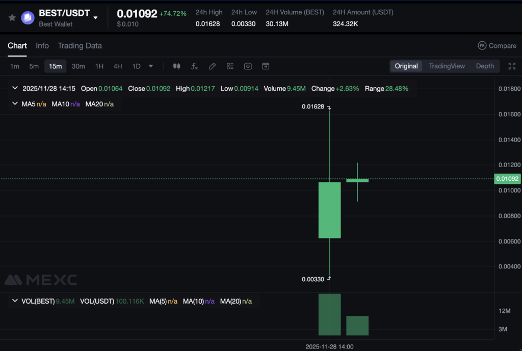 自从在 MEXC 交易所开始交易以来,BEST 的价格已上涨 74% ,在预售者获利了结后,开始推高价格 。