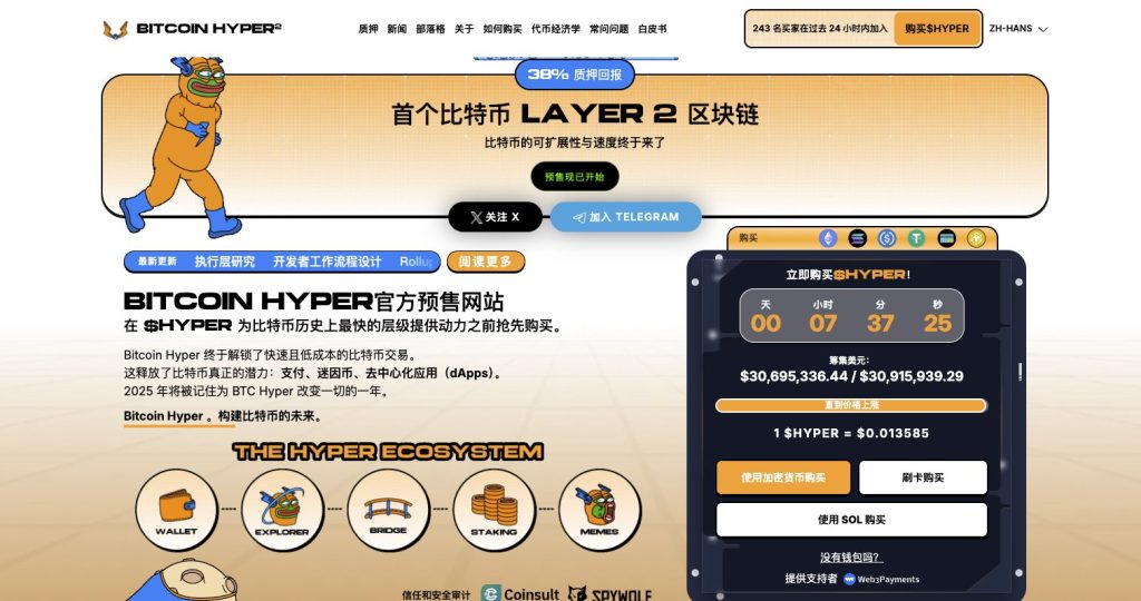 Bitcoin Hyper($HYPER)代幣的预售在尚未结束前已累积突破3060万美元,这个数字不仅代表资金高度集中,也显示出比特币Layer2叙事在2025的强势回归。其采用Solana虚拟机设计,使比特币主网能首次以极低成本与高速度处理智能合约、游戏、支付与模因相关应用。这种结构上的融合,使比特币长期以来的不可编程限制得到突破,让BTC真正具备跨链价值捕捉能力。