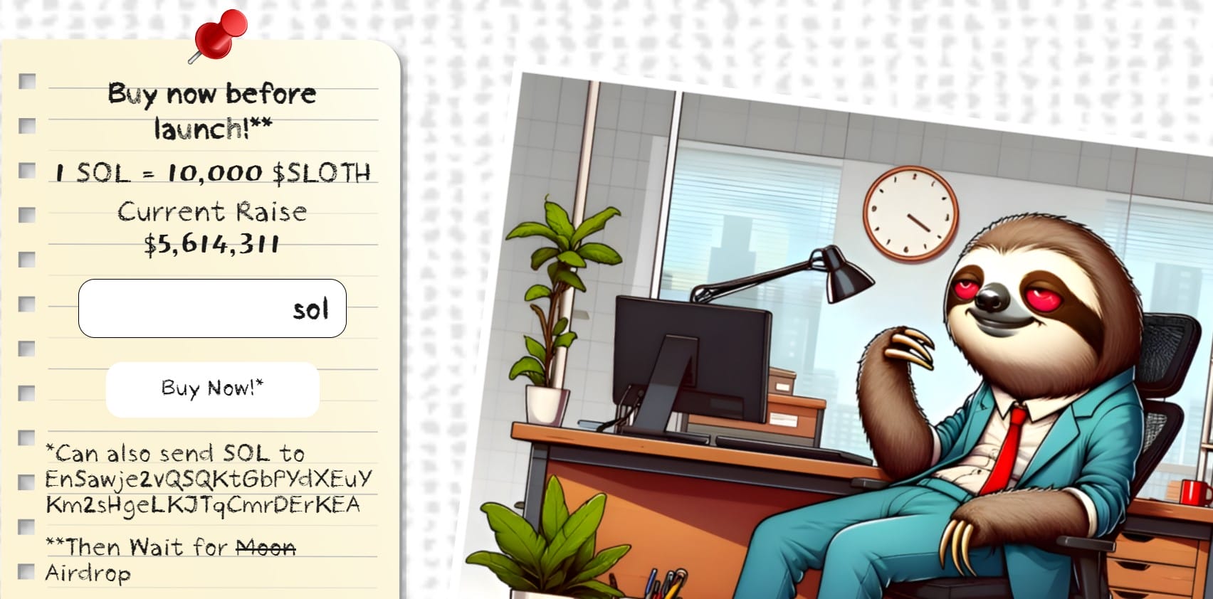 • 兑换比例:1 SOL = 10,000 $SLOTH