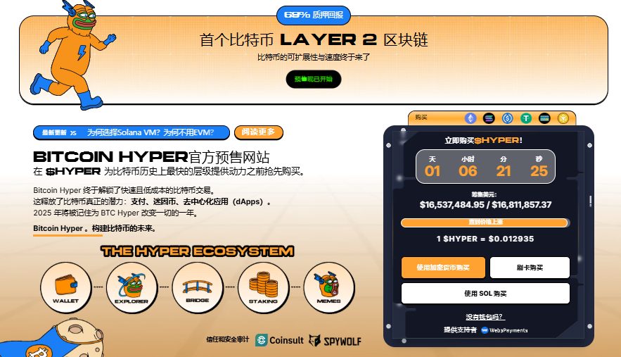 Bitcoin Hyper ($HYPER)定位为首个原生比特币Layer 2,由Solana虚拟机(SVM)驱动。其目标是通过启用闪电般快速、低成本的智能合约、去中心化应用,甚至meme币创建,来扩展BTC生态。