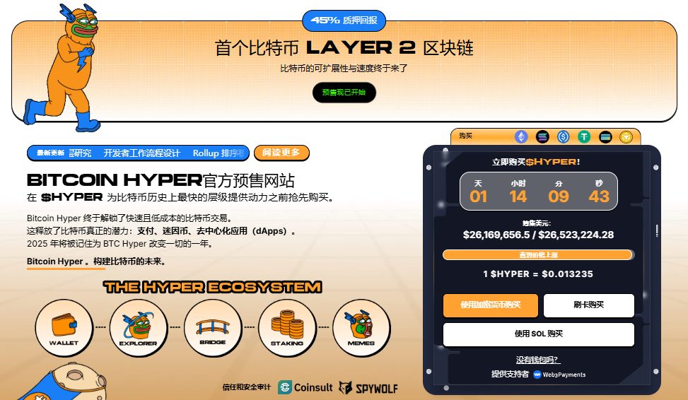 随着比特币活动上升以及对高效BTC基础应用需求增加,Bitcoin Hyper作为连接加密货币两个最大生态系统的桥樑脱颖而出。如果比特币奠定了基础,Bitcoin Hyper可能让它重新变得快速、灵活且有趣。