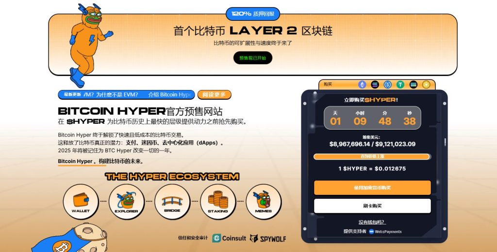 该项目已通过Consult审计,致力于实现可扩展性、简洁性与信任保障。投资者兴趣高涨,预售资金已突破890万美元,剩余配额有限。目前HYPER代币售价仅为0.012675美元,价格即将上涨。你可通过官方Bitcoin Hyper网站,使用加密货币或银行卡购买HYPER代币。