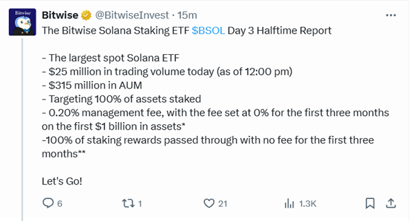 Bitwise Solana ETF 净流入突破 1.16 亿美元!CIO:SOL 具比特币级潜力