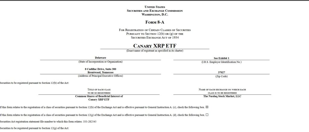 Canary filed 8A for XRP ETF last night, which points to launch tomorrow or Thursday (today is holiday). Thursday was the day we thought they'd be on track for but when they did the 8A for HBAR they launched the next day. Not done deal but all boxes being checked. Stay tuned.. pic.twitter.com/gVt9c3psmu