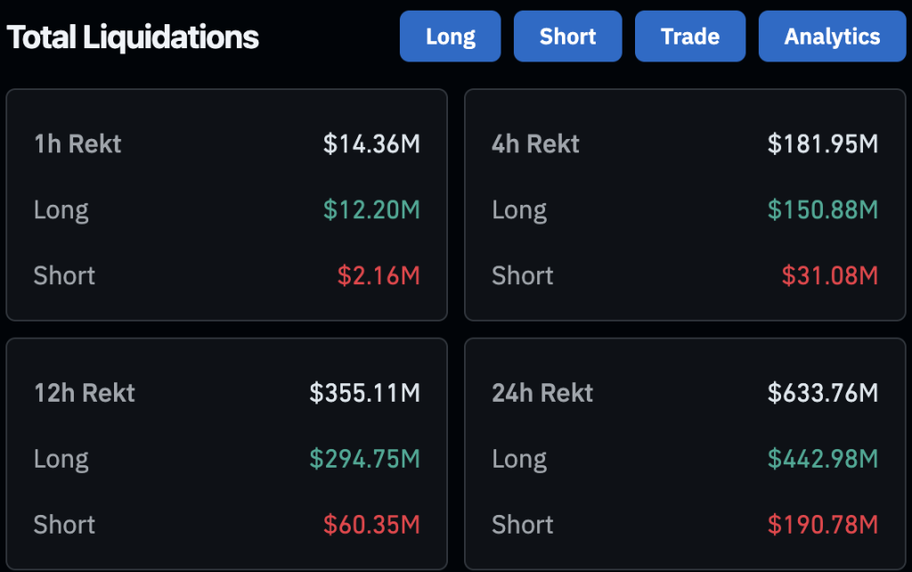 在消息公布后,24 小时内有超过 166 万名交易者被清算,总计平仓金额达 193.3 亿美元。其中,比特币和以太坊就占了近 100 亿美元,使其成为今年最严重的去杠杆事件之一。