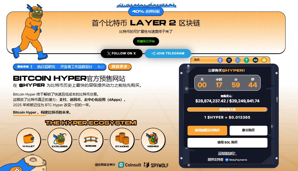 已筹集2,880万美元,并有鲸鱼透过五位数买入进入,投资者对Bitcoin Hyper的胃口依然强劲。