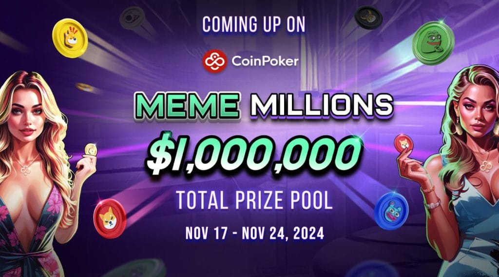 顶级在线扑克平台CoinPoker将于11月17日推出Meme Millions系列锦标赛,顾名思义,赛事总奖池高达$1,000,000!