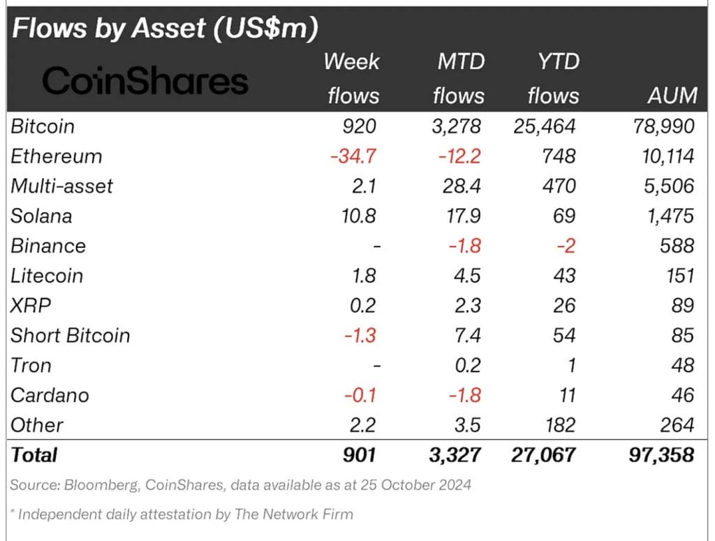 CoinShares报告:上周数字资产流入达到9.01亿美元 但几乎全数流向比特币