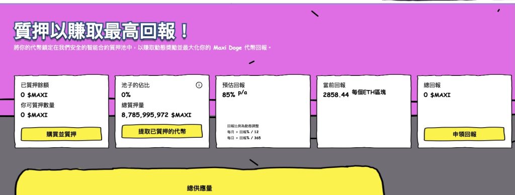 推出的时机更是恰到好处。狗狗币似乎已准备迎接新一轮上涨,Solana上的BONK也在走强,整个迷因季的气氛再度回归。Maxi Doge很可能成为这一轮以太坊生态中的领头羊,完美扮演新世代狗狗币的角色。