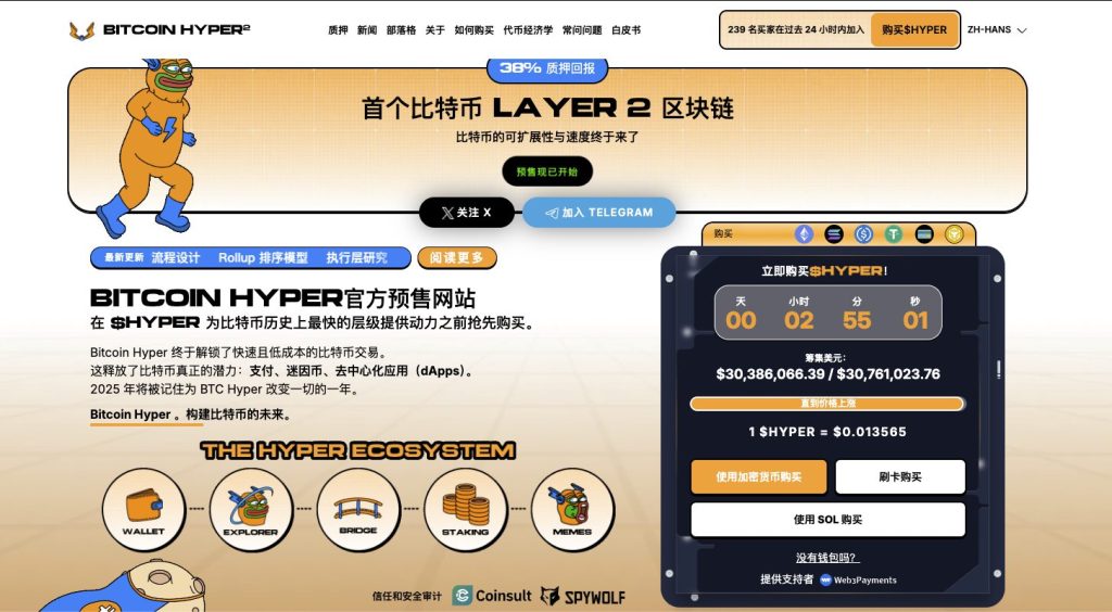 Bitcoin Hyper($HYPER)代币的预售在尚未结束前已累积突破3,000万美元,这个数字不仅代表资金高度集中,也显示出比特币Layer2叙事在2026的强势回归。其采用Solana虚拟机设计,使比特币主网能首次以极低成本与高速度处理智能合约、游戏、支付与迷因相关应用。这种结构上的融合,使比特币长期以来的不可编程限制得到突破,让BTC真正具备跨链价值捕捉能力。
