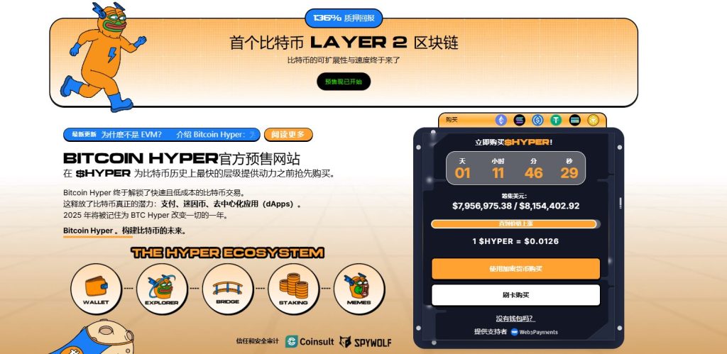 Bitcoin Hyper($HYPER)是首个基于Solana虚拟机(SVM)的比特币原生Layer 2,旨在通过快速、低成本的智能合约、去中心化应用(dApps)和迷因币创建,为比特币生态系统注入强劲动力。