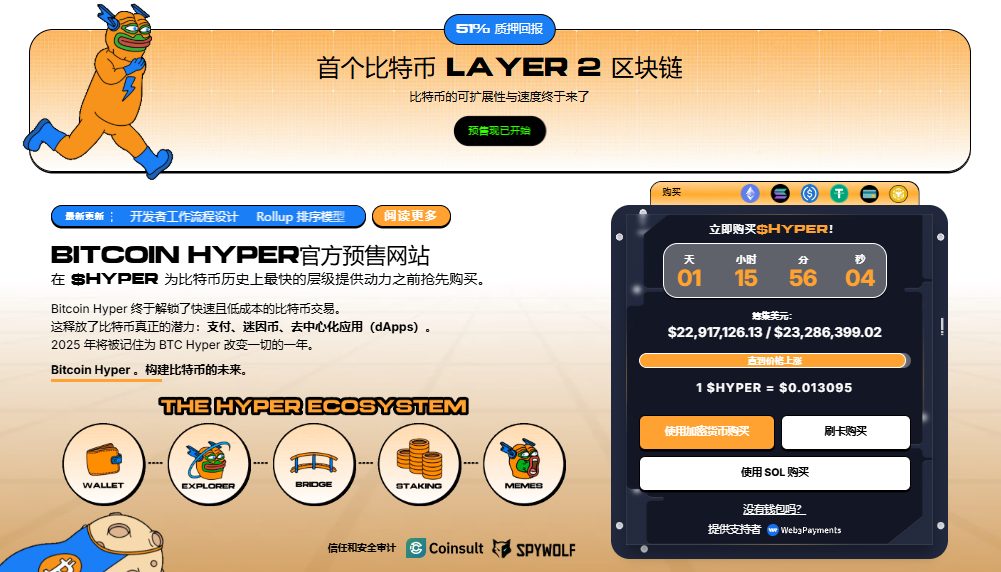 预售提供早期访问已筹集超过2200万美元的项目机会,让投资者在更广泛采用启动前入场。随着主要钱包和交易所开始支持Hyper Layer-2,其实用代币$HYPER的需求预计将增长,早期买家将率先受益。