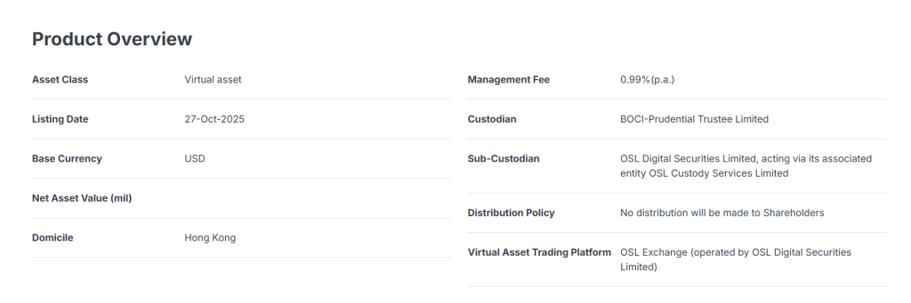 - 交易 / 托管:交易与结算由 OSL 交易所 承担,托管由 OSL Digital Securities 提供。