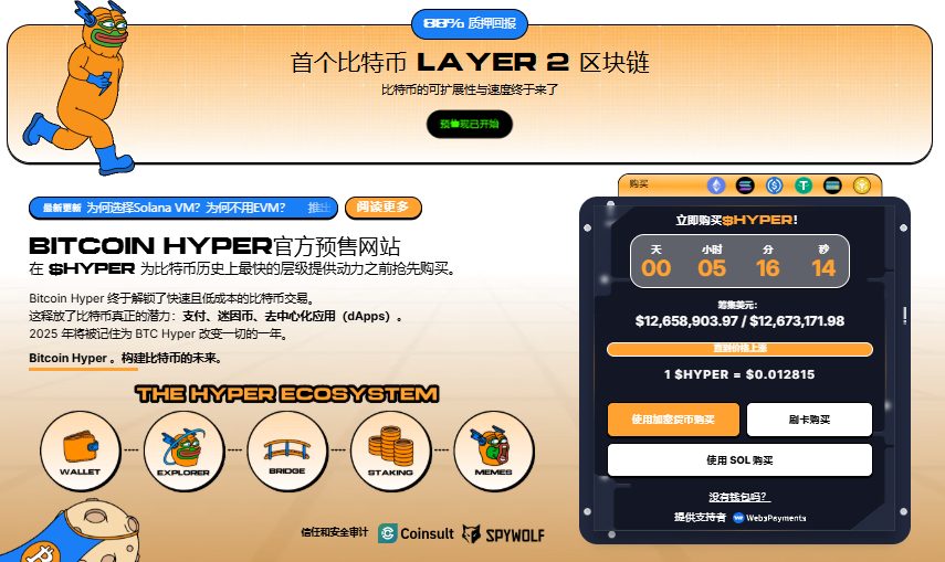 Bitcoin Hyper ($HYPER)定位为首个基于Solana虚拟机(SVM)的比特币原生二层解决方案。其目标是通过实现闪电般快速、低成本的智能合约、去中心化应用(DApps)以及迷因币创建,来扩展比特币生态系统。