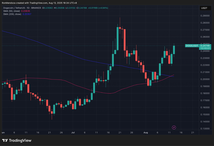 分析师们表示,DOGE自去年11月以来首次触发黄金交叉模式。