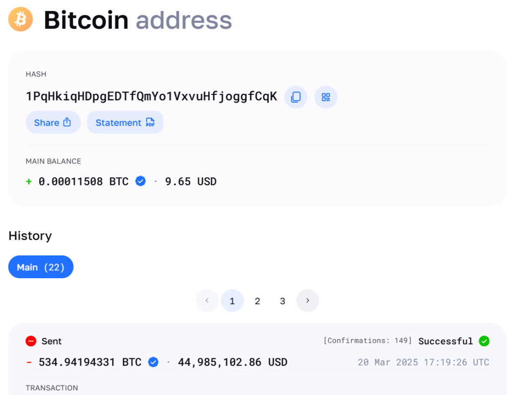一个自2016年以来未曾活动的比特币钱包刚刚向新地址转移了534.94枚BTC(约4500万美元)。这一大额转移引发了市场对潜在抛售的担忧,尤其是在BTC过去一个月内已下跌10%的情况下。这究竟是普通的资金转移,还是大户正酝酿市场震荡?