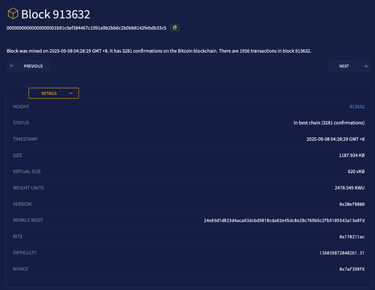 来源:https://btcscan.org/block/00000000000000000001b91c0ef384467c1091a9b2bb6c2b0bb8142febdb33c5?expand