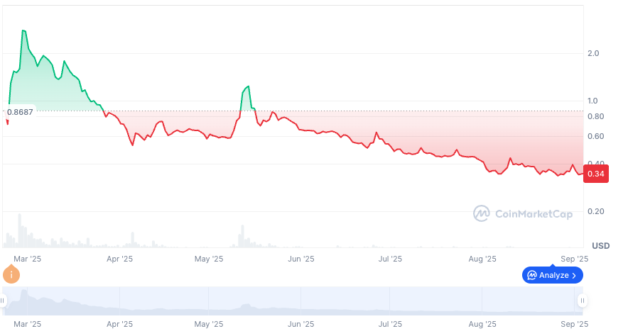尽管有这些令人鼓舞的发展,Pi币的价格仍然难以获得市场关注。在过去几周内,价格约为0.3468 美元,现时徘徊于这个历史低点。该代币在上周上涨了1.5%,特别是在一些生态系统更新之后。例如,Pi Network 被授予新加坡 Token2049 的金牌赞助商。这是一个全球顶尖的 Web3 活动,预计在十月将吸引超过 25,000 名参与者。此外,Pi 也在Onramp Money 获得上市。这使得超过60个国家的用户可,以直接使用当地支付方式,如 GCash、Maya 和 Alipay购买Pi币。