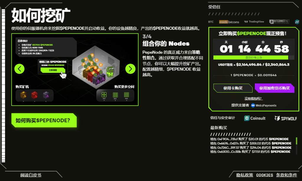 PepeNode将加密货币挖矿转化为一个简单的挖矿赚取 (M2E) 游戏,并不需要硬件。只需登录,获取虚拟节点,堆迭矿机,并开始在顶级表现的迷因币中赚取奖励。