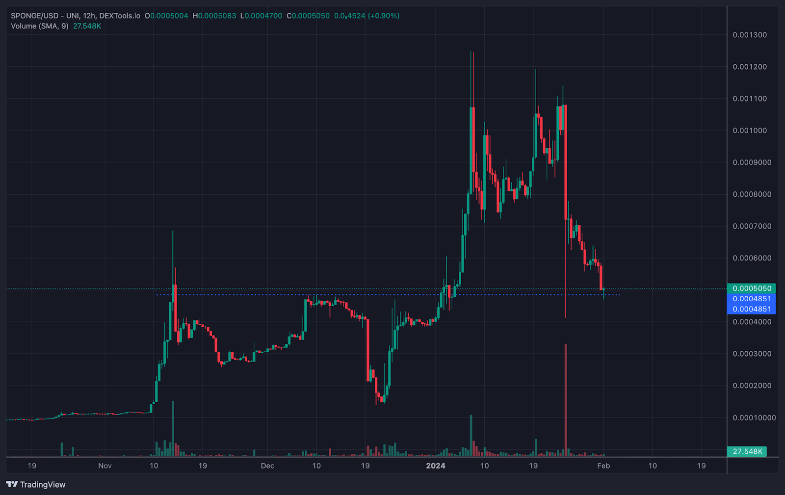 SPONGE V1以0.000025美元的价格上市,目前的价格为0.000509美元 – 这相当于2034%的投资回报率。