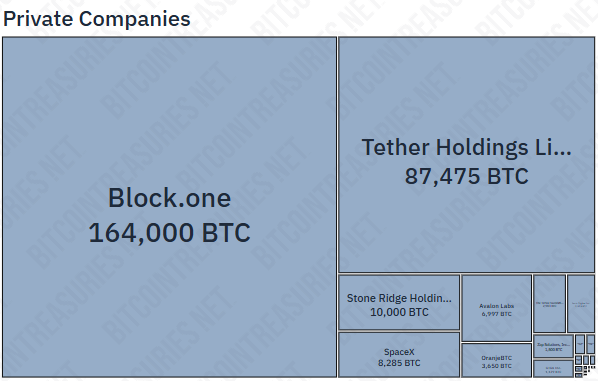 这笔交易延续了 Tether 自 2022 年起的既定策略,将部分季度利润用于增持比特币,作为长期储备。若数据属实,Tether 的总持仓将升至 109,410 枚 BTC(bitcointreasuries统计为87474枚),总值超过 124 亿美元,仅次于 Block One,成为全球第二大企业比特币持有者。