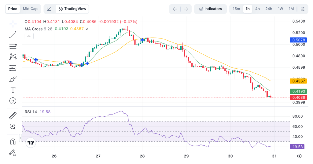 在12小时的图表上,ENA在一个下跌的扩大楔形中交易——这是一种通常预示着一旦结构收紧就可能发生的上行突破的看涨模式。以太那在10月27日试图突破,但随着隐藏的看跌背离形成而失败。当价格创造一个较低的高点,而相对强弱指数RSI,却创造一个较高的高点时,就会发生这种情况。这表明空头重新获得短期控制权,缩短了反弹。但是,以太那已经从关键的0.41美元支撑位回升,如果该水平保持,则有可能向0.45美元和接下来的0.53美元移动。持续突破0.49美元,这是当前扩大楔形的上趋势线所在,将确认看涨反转,为0.65美元打开大门。