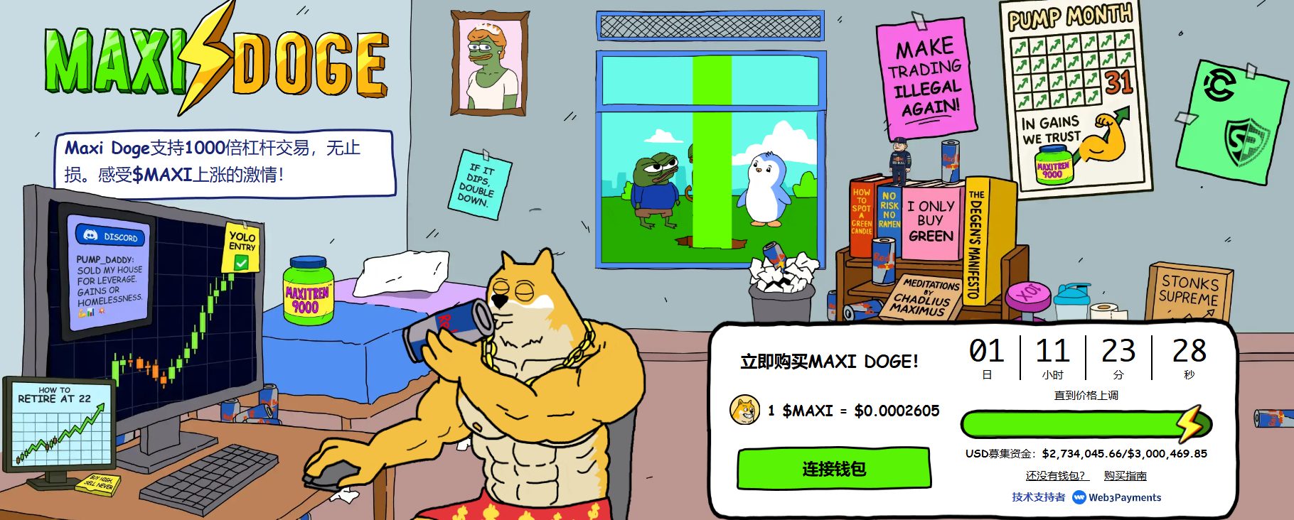 市场动能持续升温!目前 Maxi Doge($MAXI)预售筹资已突破270万美元,代币价格仅为 $0.0002605。随着预售阶段推进,价格将逐步上调,越早入场,潜在收益越可观。