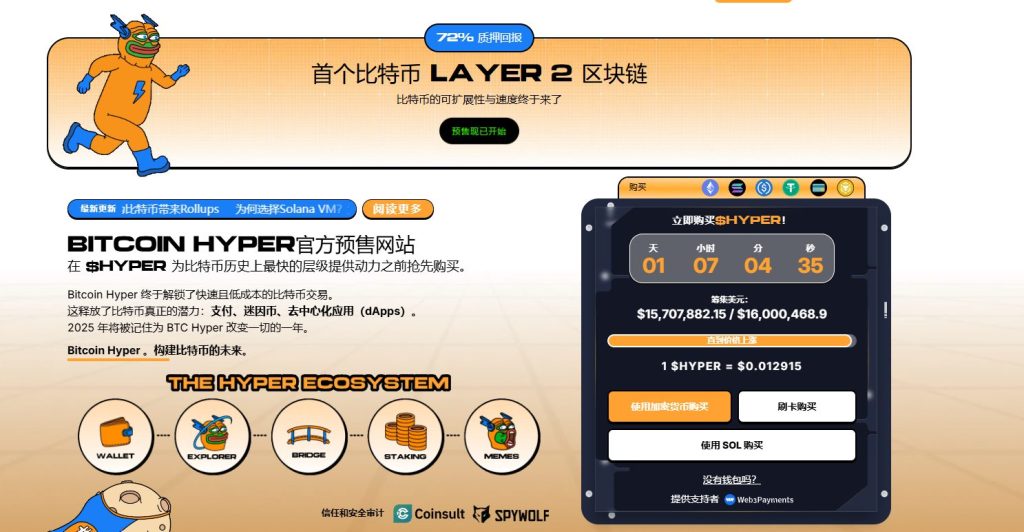 预售项目 Bitcoin Hyper ($HYPER):BTC安全性 + Solana速度