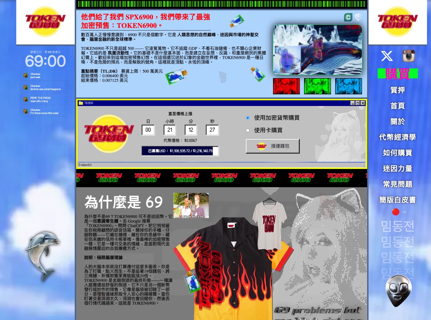 TOKEN6900计划超越表现优异、足以与标普500收益相提并论SPX6900。更具体来说,自2023年8月推出以来,其回报率已超过4700万%,這一數據在meme幣市場中极具吸引力,激发了用戶的興趣和參與熱情。而幽默感也始终是TOKEN6900的一部分,这种「改良」前代的方式,竟以多发行一枚代幣的荒谬形式来自夸。