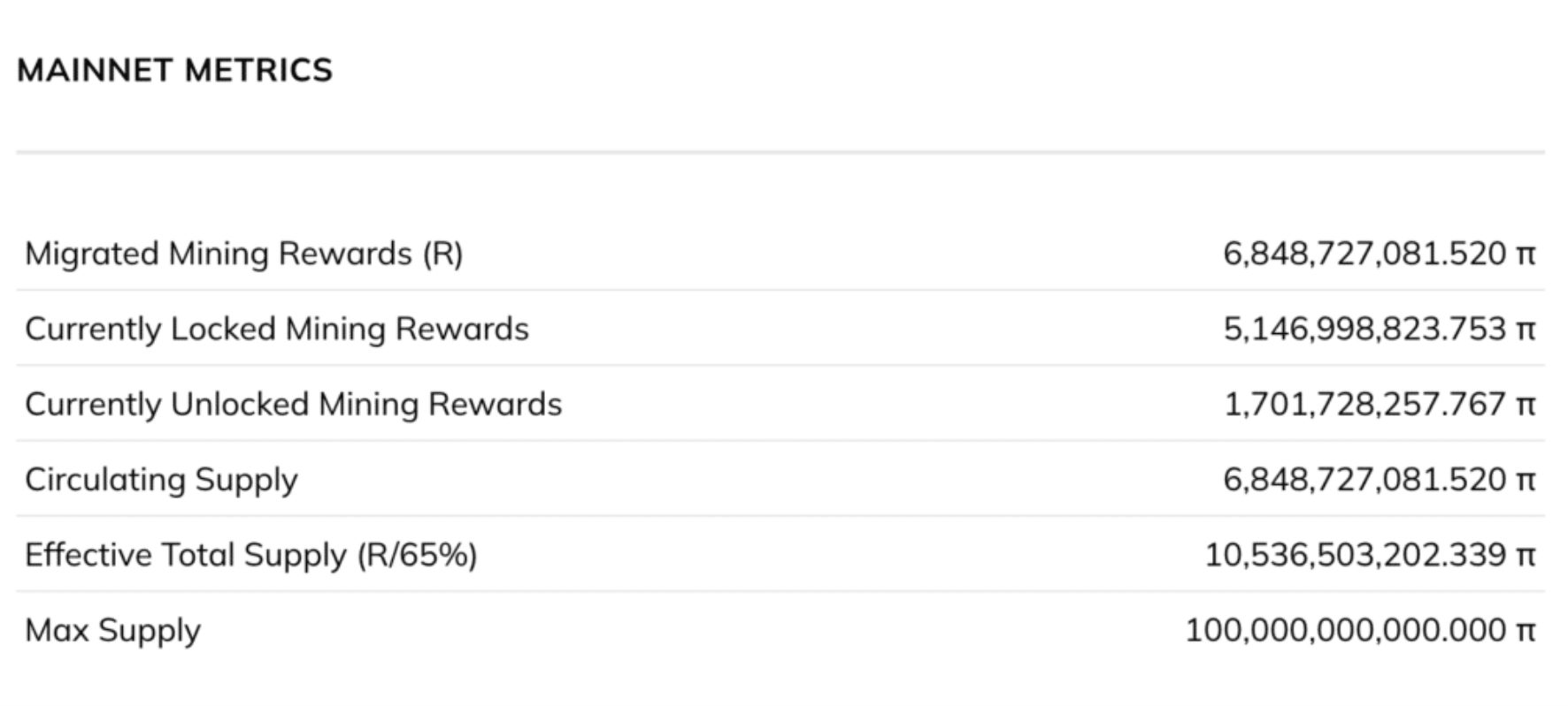 从链上数据来看,PI 的基本面表现相当稳健。目前已有约 51 亿枚 PI 被锁仓,仅剩约 17 亿代币尚未释放,团队通过逐步释放机制有效控制供应,避免市场过剩。此外,已有高达 68 亿枚代币完成主网迁移,显示出用户积极性极高。这一流通规模也意味着 PI 市场已具备良好的流动性基础。
