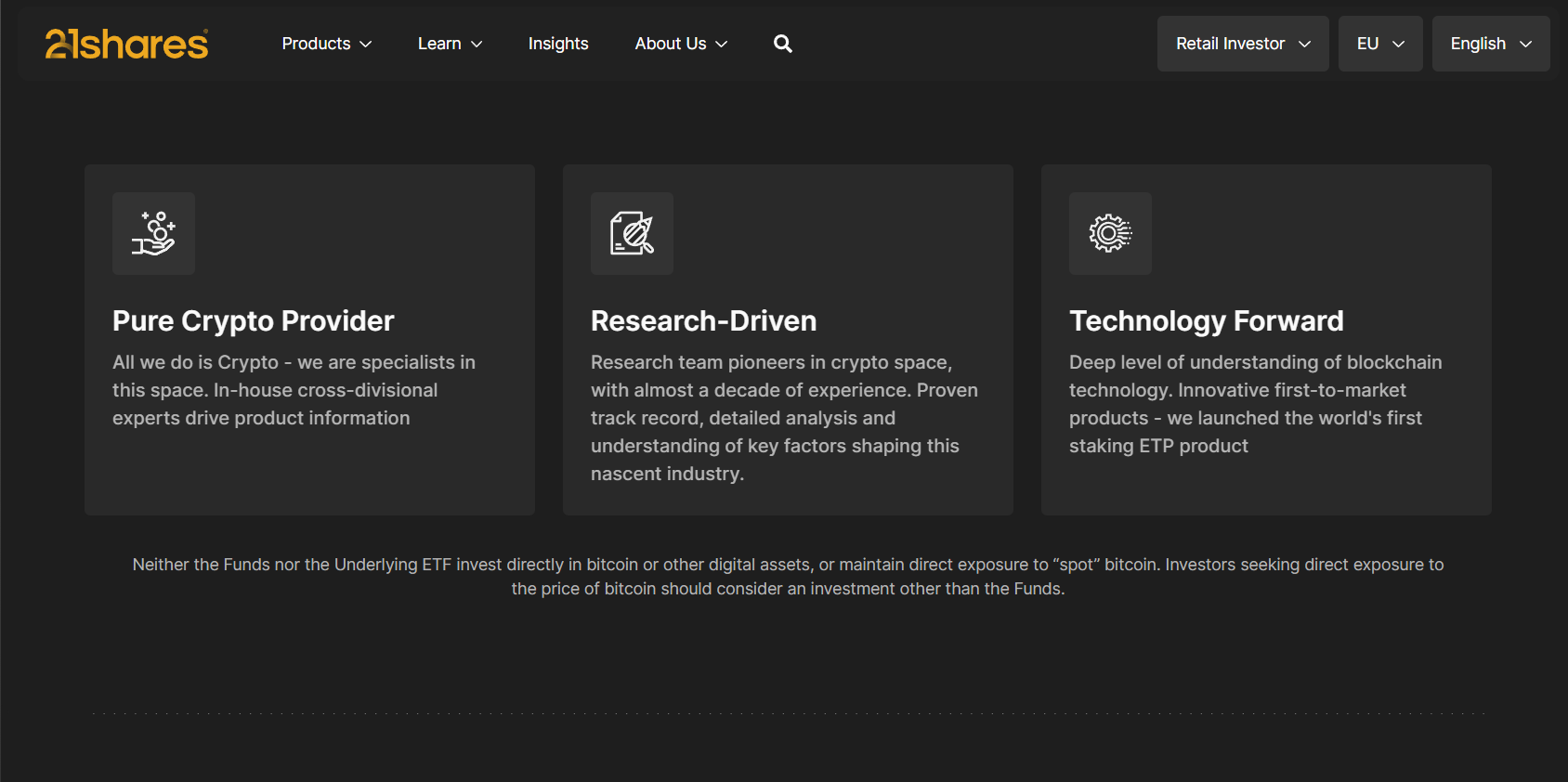 Crypto ETFs also benefit from regulatory oversight. In the US, the SEC oversees ETFs, approving funds based on strict criteria and requiring quarterly filings as well as regulatory disclosures. In the US, investors also benefit from SIPC insurance, which protects investors against broker insolvency.