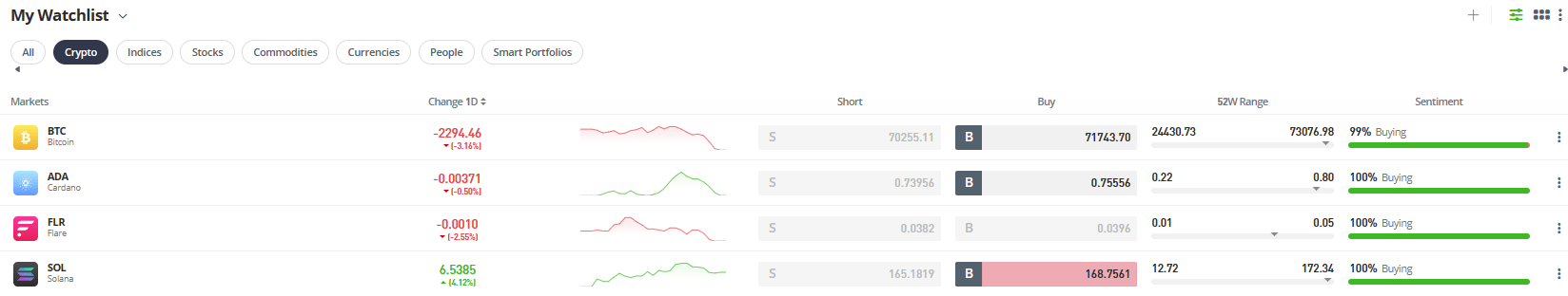 A good feature eToro provides is a watchlist. This gathers data on the cryptocurrencies users will search for and create a watchlist featuring them. Users can keep a close on daily markets by adding what they want to see to their watchlist.
