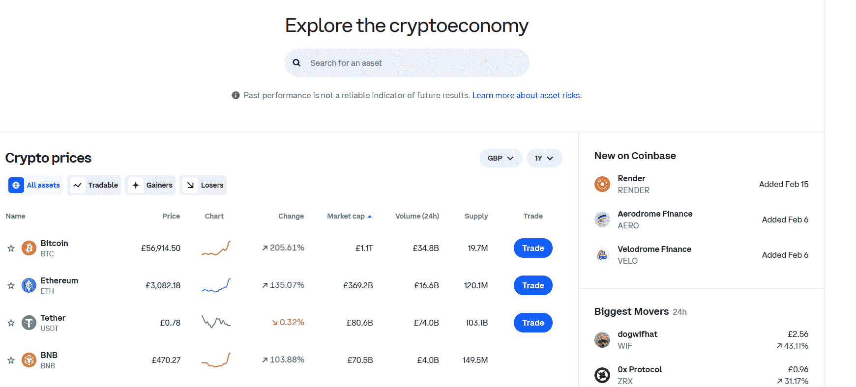 On the positive side, Coinbase provides a free and easy-to-use platform, which allows buyers to easily analyze trends in the market and monitor a wide range of cryptocurrencies, including Bitcoin, Tether, Binance, and Ethereum. Each row displays their current market trend, price, market cap, and trade feature.