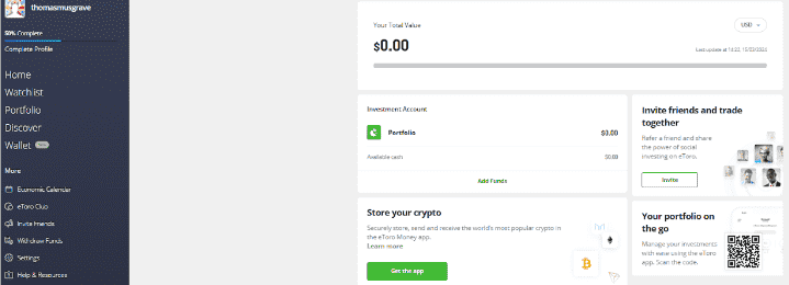 The eToro money wallet has been created for trading and can be accessed through the mobile app or website. The layout is simple but easy to navigate, making it a good wallet for beginners.