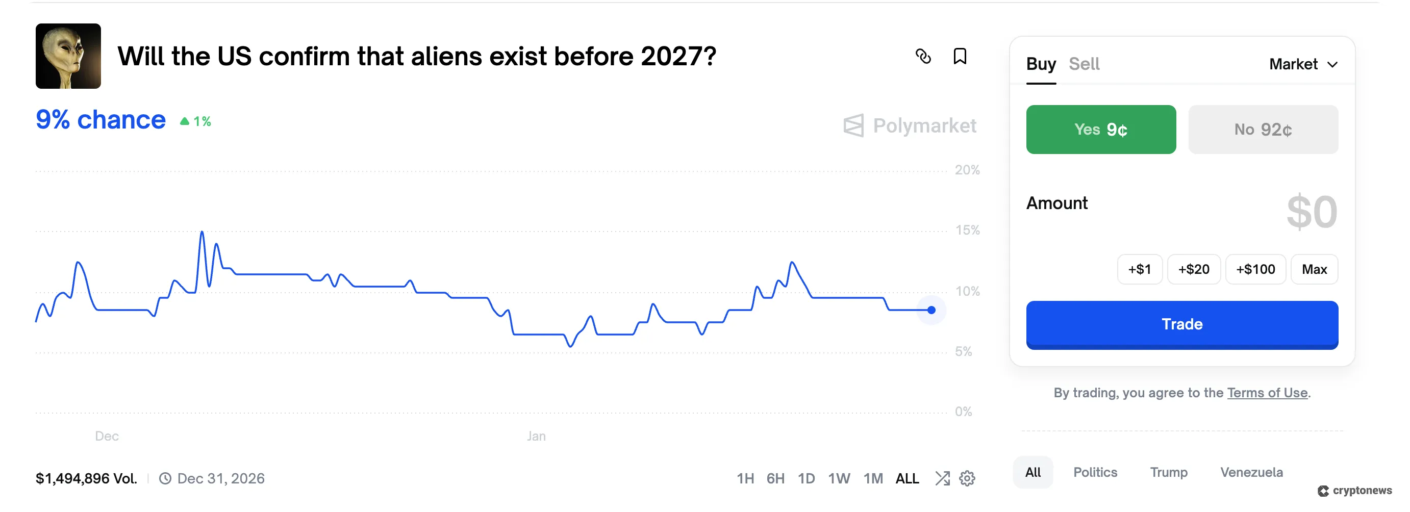 In late 2025, Polymarket traders were stunned when a $16 million market on UFO disclosures resolved “Yes” despite no evidence of any files being released.