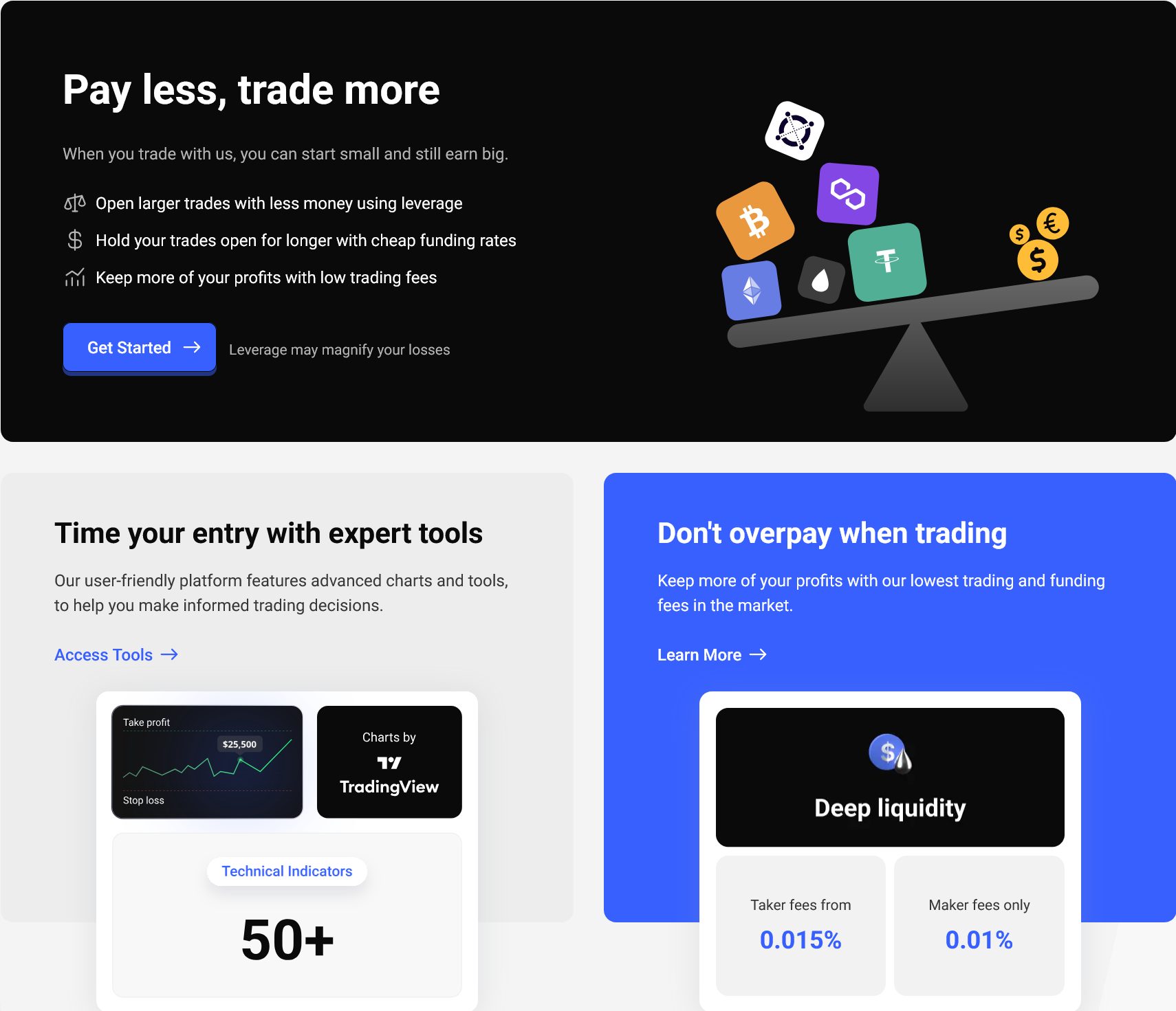 - BloFin – Tato digitální burza nabízí širokou škálu derivátových produktů, včetně futures kontraktů na hlavní i alternativní kryptoměny. Uživatelé oceňují intuitivní ovládání, rychlé vypořádání obchodů a konkurenceschopné poplatky. BloFin se snaží cílit na pokročilejší investory, kteří hledají vysoký výkon a kvalitní datové přehledy pro informovaná rozhodnutí při obchodování s pákou.