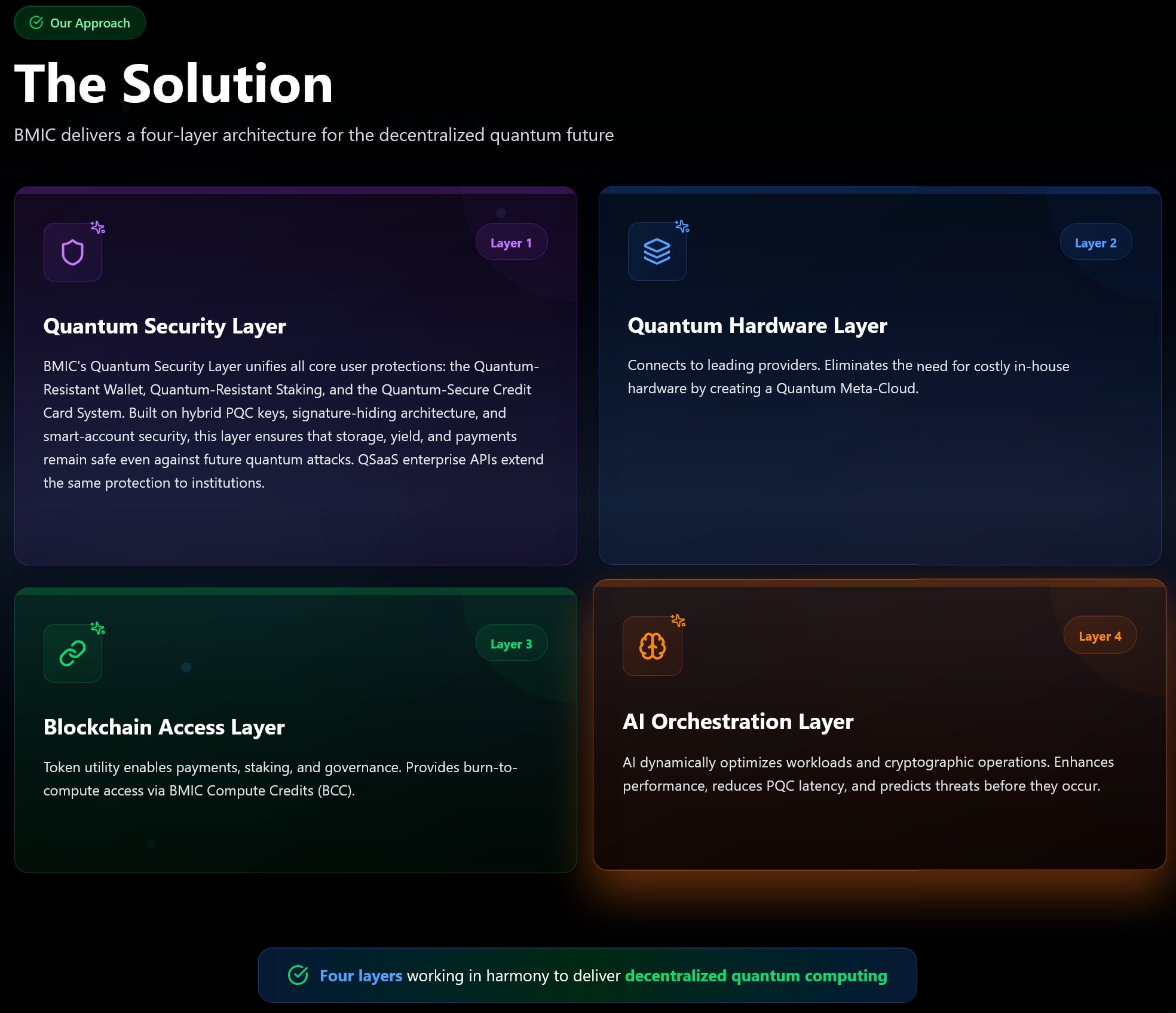 BMIC (Blockchain Micro-Ion Compute) hraje úplně jinou ligu než čisté meme projekty – staví na trendu, který má dlouhodobý přesah: bezpečnost v éře kvantových počítačů. Projekt komunikuje koncept „wallet-first“, tedy že základem ekosystému má být bezpečná peněženka a ochrana uživatele. V době, kdy se stále častěji mluví o budoucích rizicích pro kryptografii (včetně scénářů typu „harvest-now, decrypt-later“), je to narativ, který může zaujmout i konzervativnější část trhu.