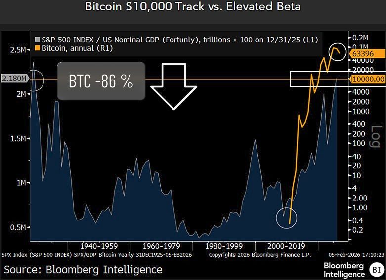 Podle analytika Bloombergu Mika McGlona může Bitcoin v nejčernějším výhledu spadnout až na 10 000 USD. Přeloženo do čísel, která umí zvednout obočí i otrlým: ze současných cen by to znamenalo ztrátu dalších -86 %, a od historického maxima dokonce zhruba -91 %.