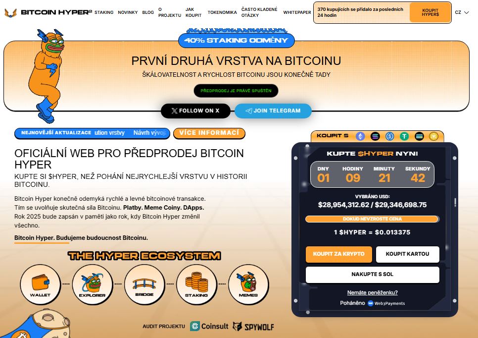 Aktuálně probíhá předprodej tokenu HYPER, který má být klíčovým palivem celého ekosystému. Token bude využíván k poplatkům, odměnám i správě sítě, což z něj v rámci platformy dělá nezastupitelný prvek. Projekt už získal téměř 29 milionu USD a již nyní nabízí možnost stakingu s výnosem 40 % APY, čímž podporuje ranou adopci.